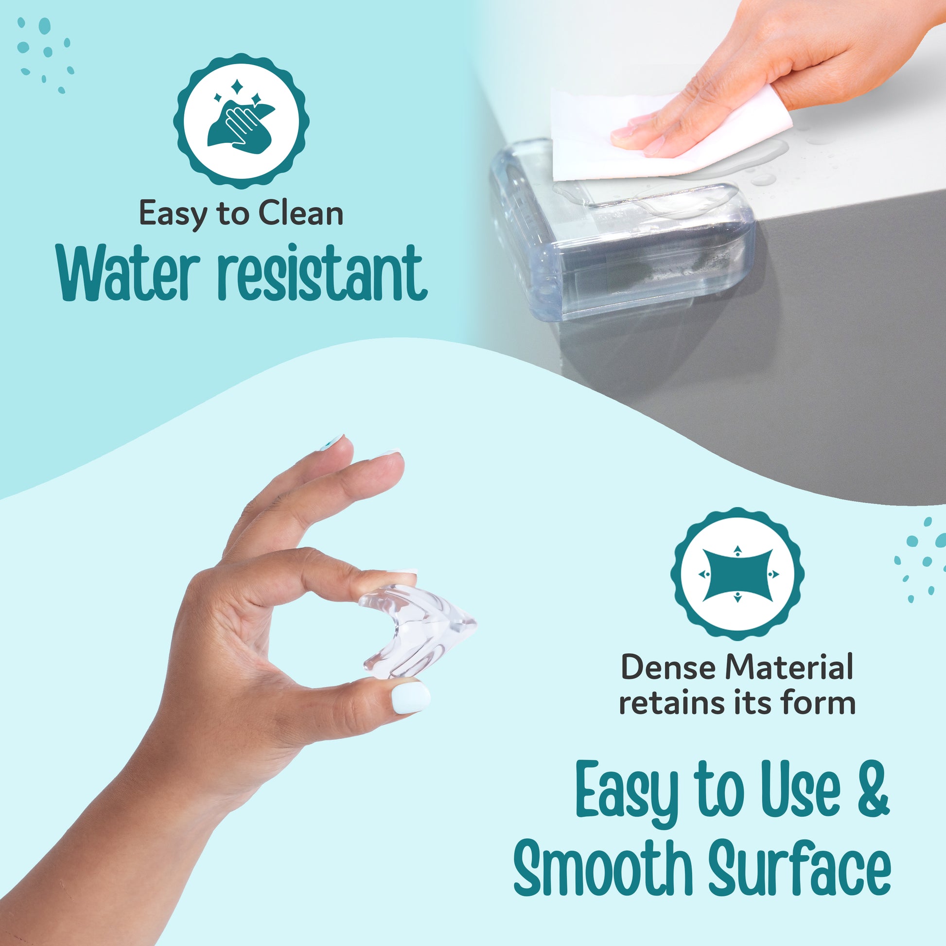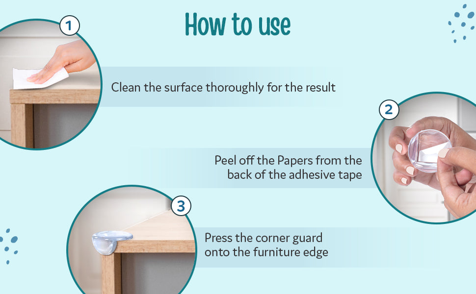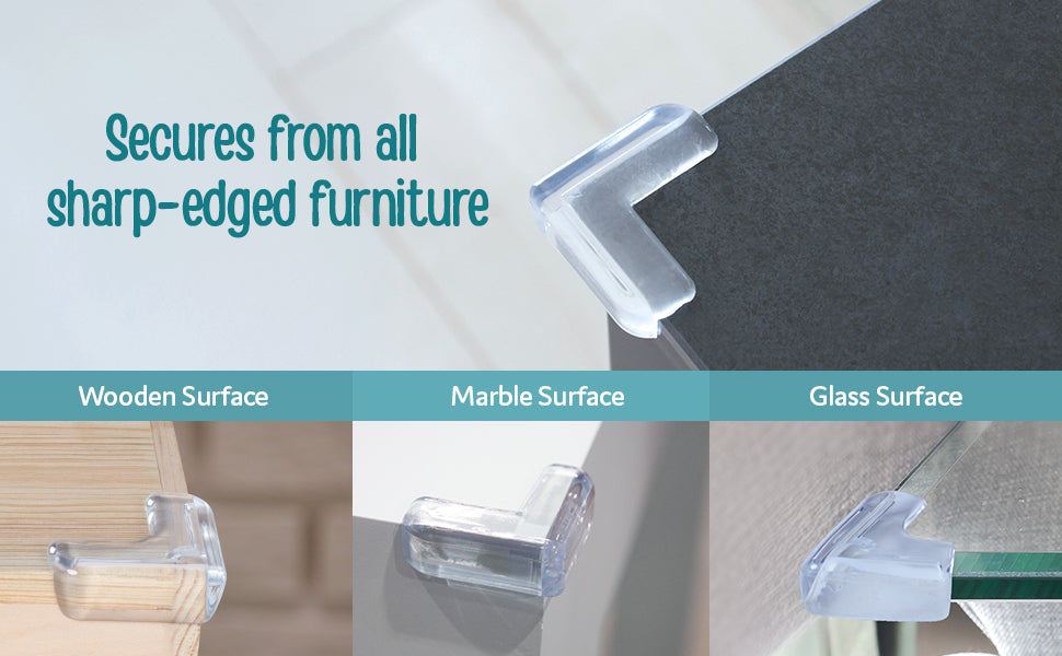 - Table Corner Guards made of soft and high-density foam cushions to protect babies from hurting their head, forehead, arms