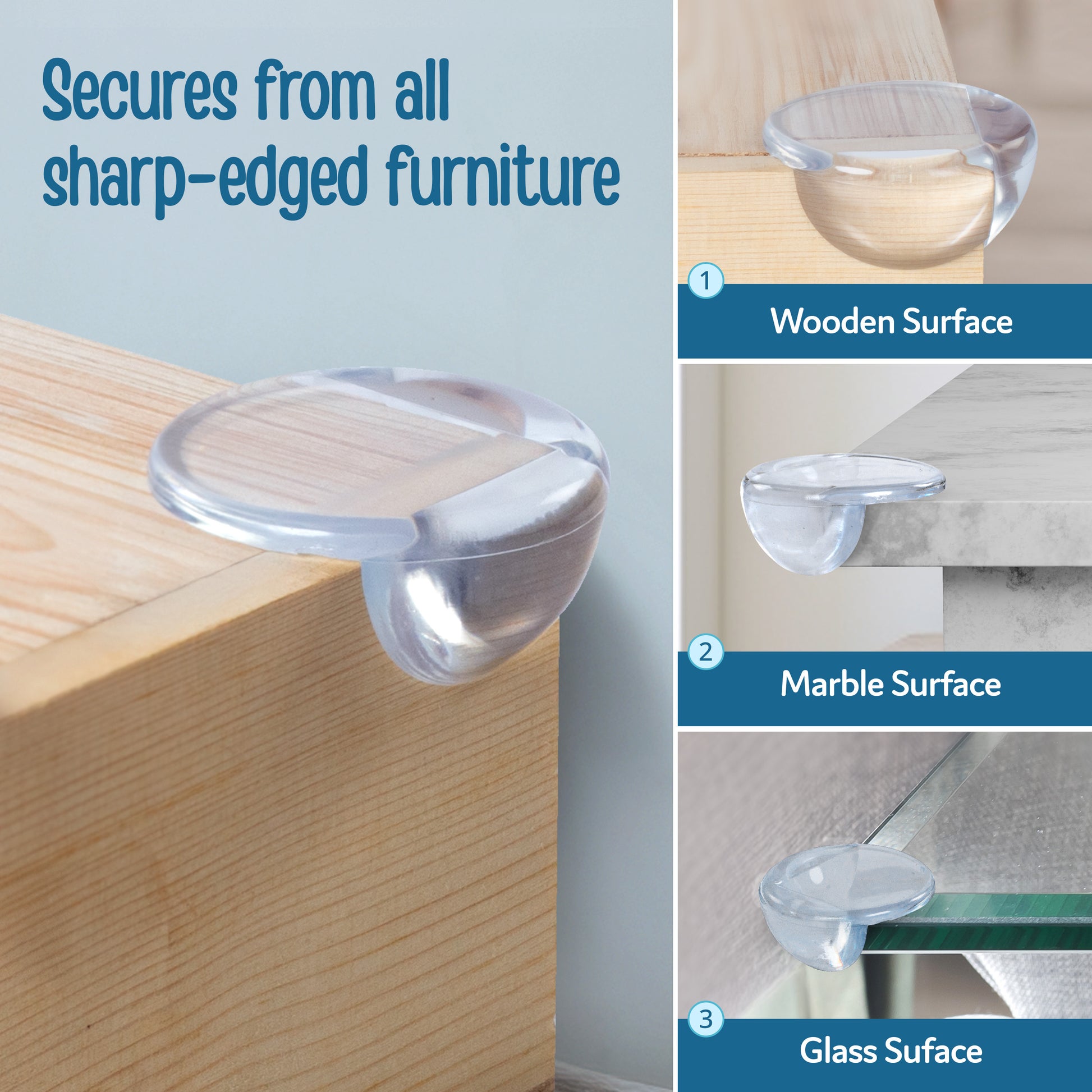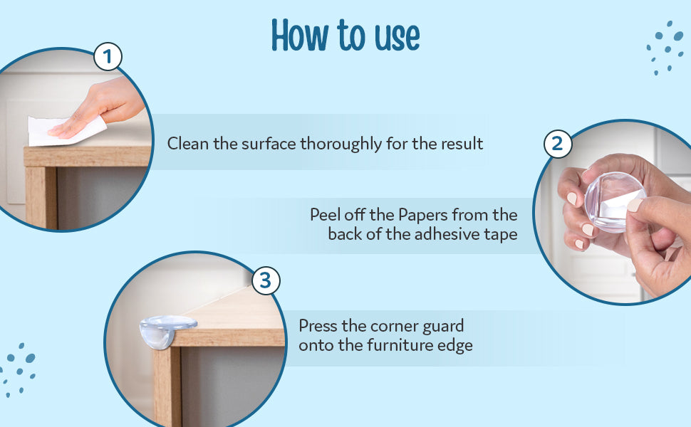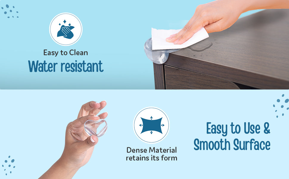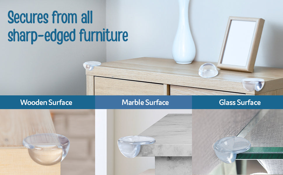 - Table Corner Guards made of soft and high-density foam cushions to protect babies from hurting their head, forehead, arms