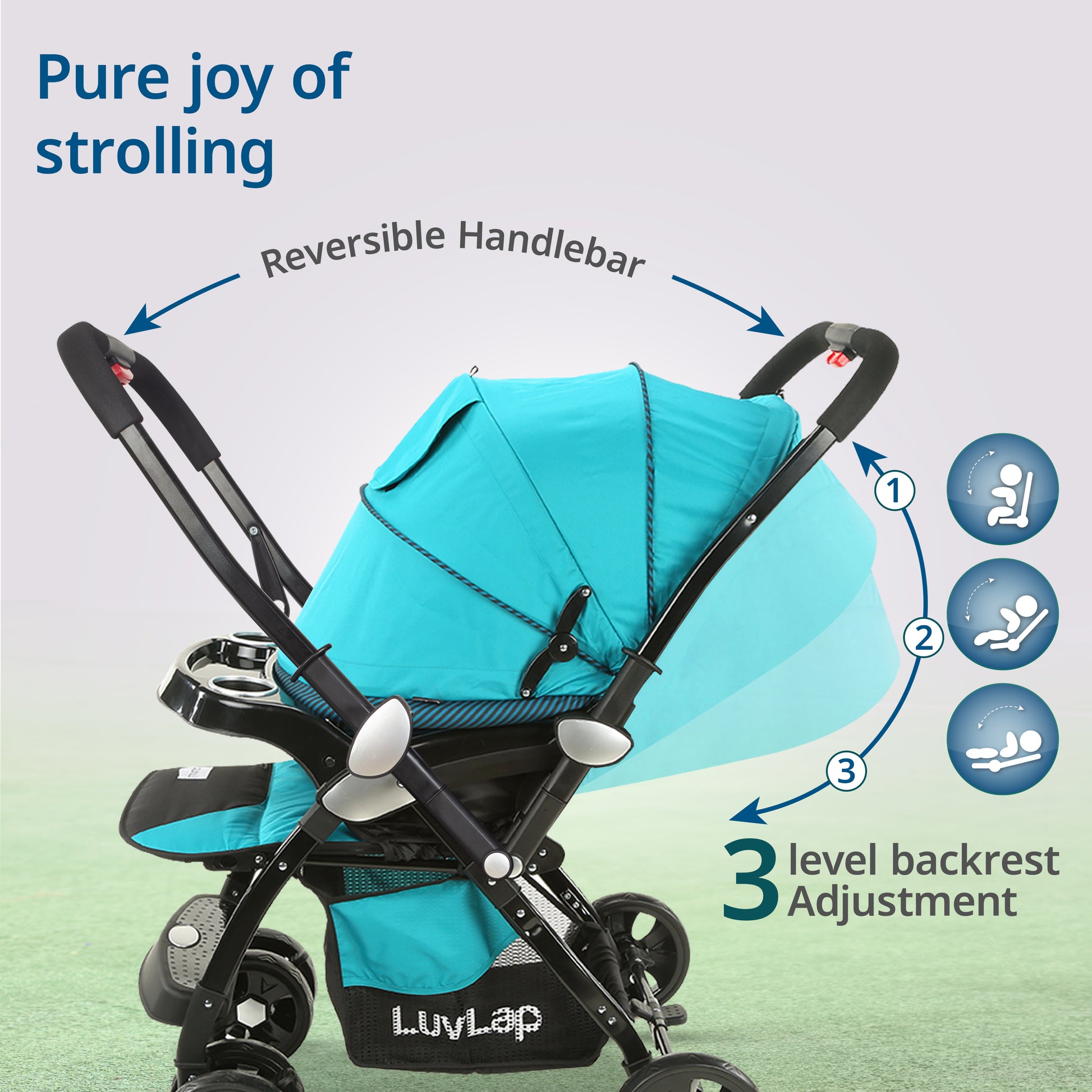- Reversible handlebar - Allows baby to face parent while strolling;3 position seat recline for sleeping, relaxing and sitting I Carrying Capacity upto 15 kgs