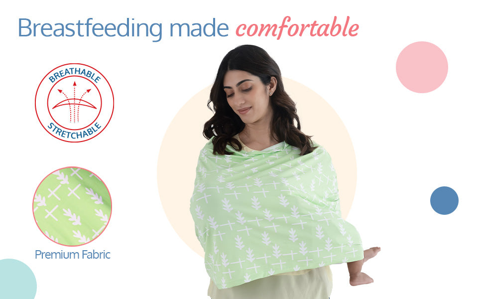 Hello mommies, meet the LuvLap NursingCover. It is made of stretchable & breathable material,making it comfortable for year round use. Its stretchy, durable and breathable. It boosts mothersconfidence to breast feed anywhere conveniently without any stress. Because a comfortable breastfeeding experience makes baby happy and you, happier.
