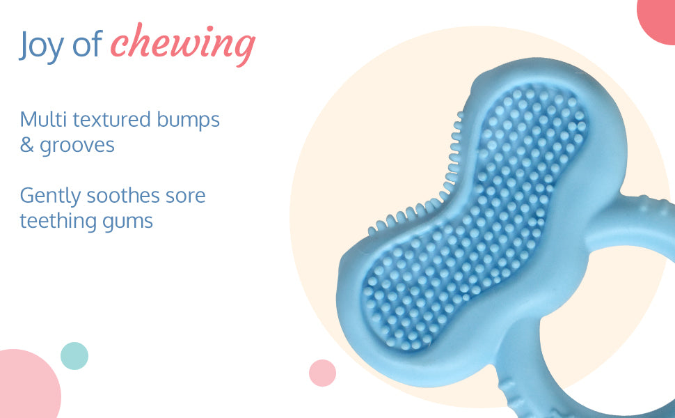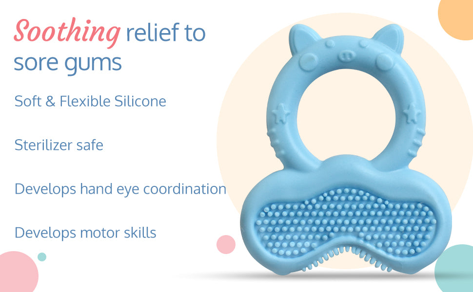- Soft and Flexible silicone soothes, stimulates and cleans gums. Relieves teething pain