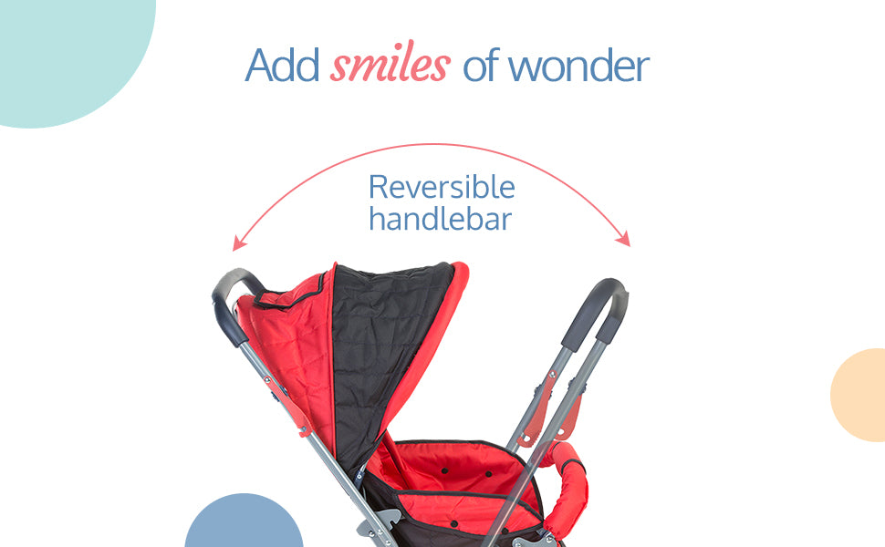 - Baby Pram with Easy Child Monitoring : Reversible handlebar - Allows baby to face parent while strolling, Peek - a - Boo window to keep an eye on child while strolling in forward mode