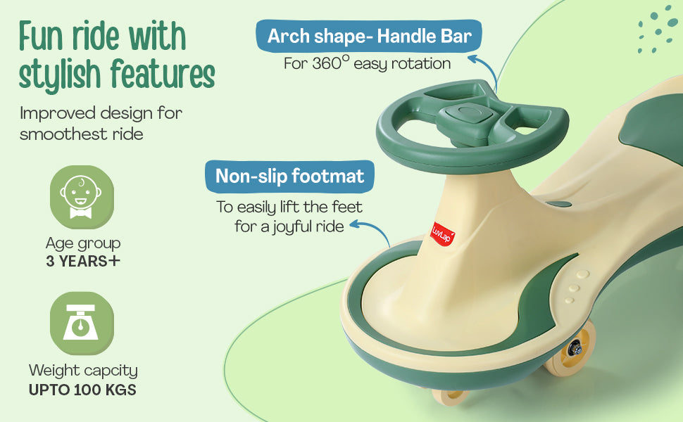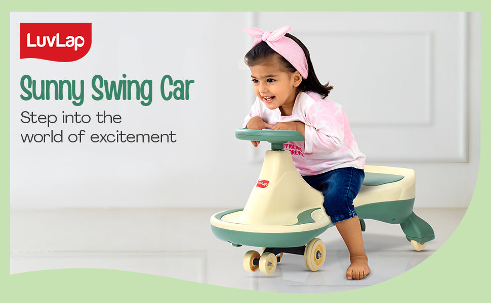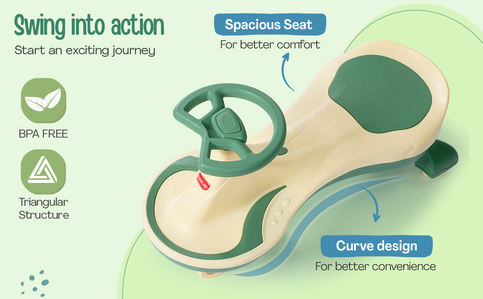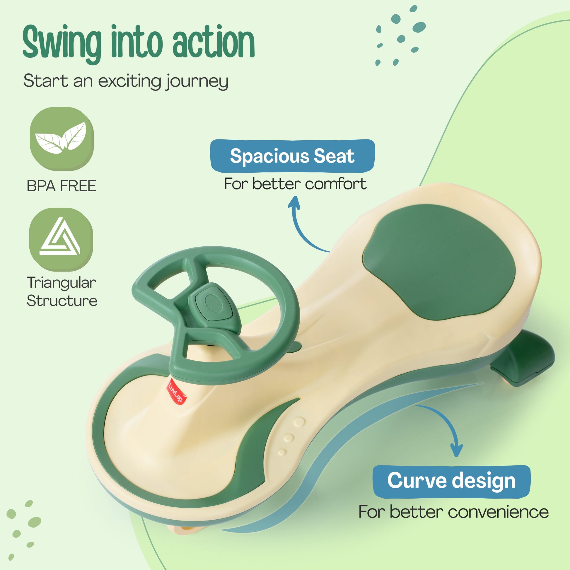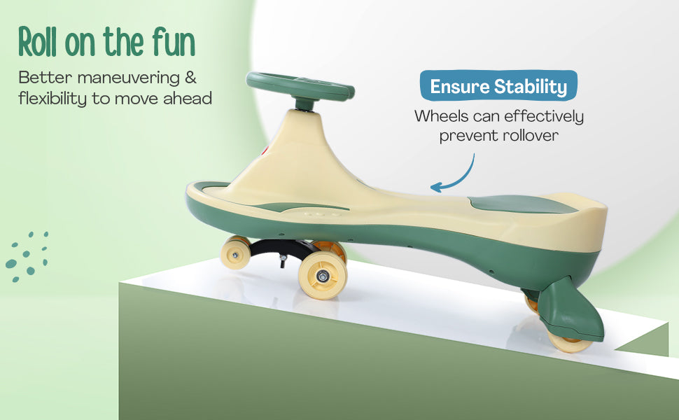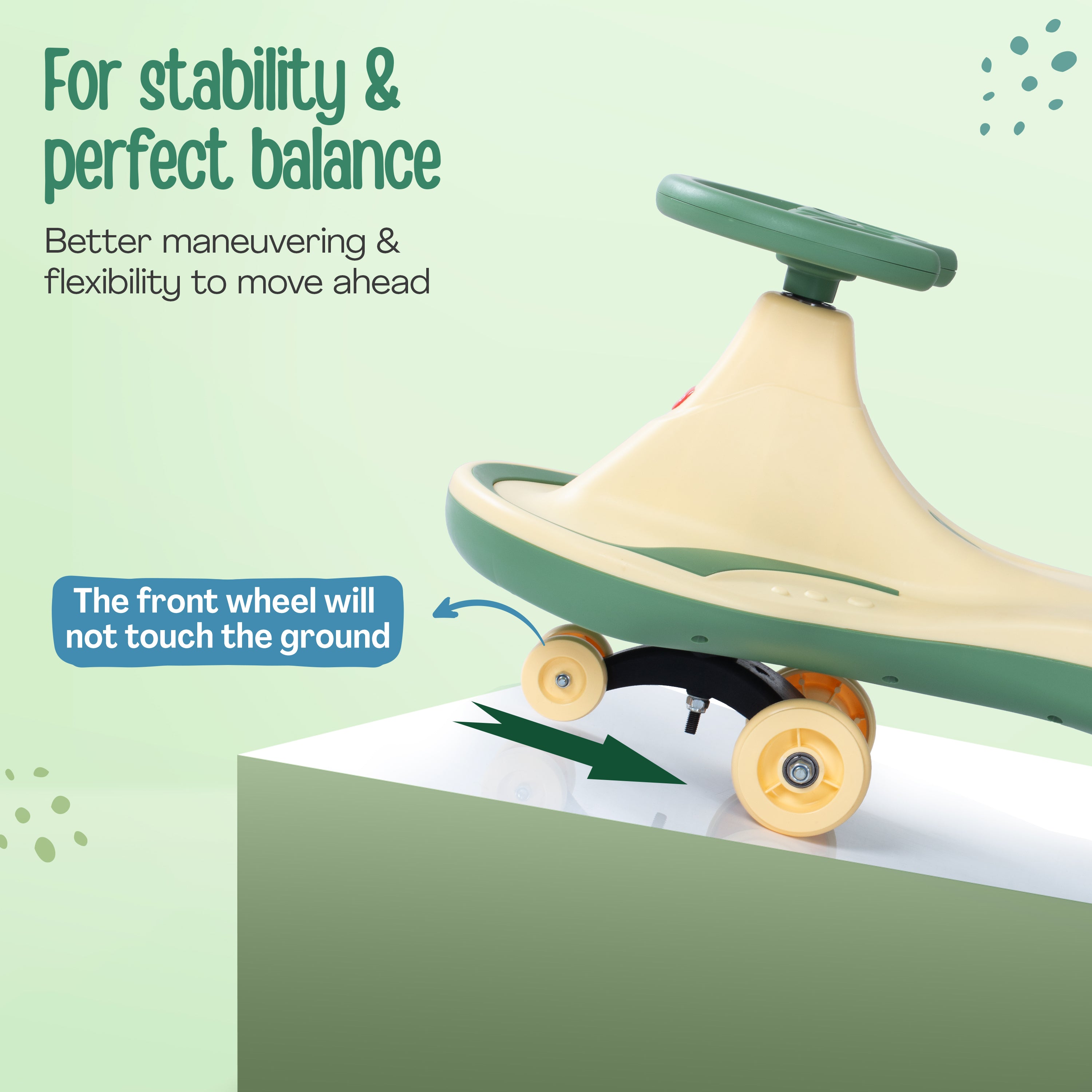 Sunny Swing Car, Kids Push Car, Magic Car for Kids, Comfortable Seats & Durable, Ride On Magic Car for 3+ Years Baby Boy & Girl, Beige & Green