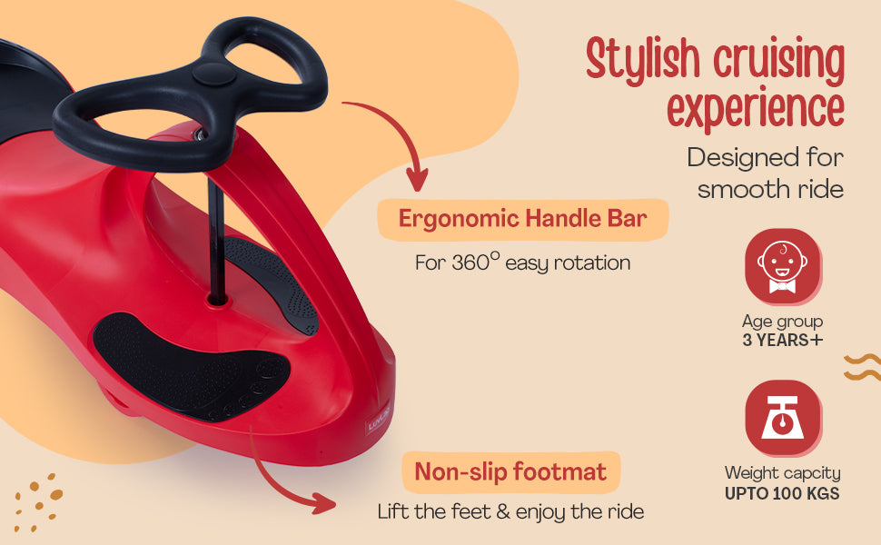 Sunshine Swing Car, Magic Car, Kids Push Car, Swing Car for Kids, Comfortable Seats & Durable, Baby Car, Magic Toy Car, Kids Swing Car, Ride On Car, Kids Car, 3+ Years, Red & Black
