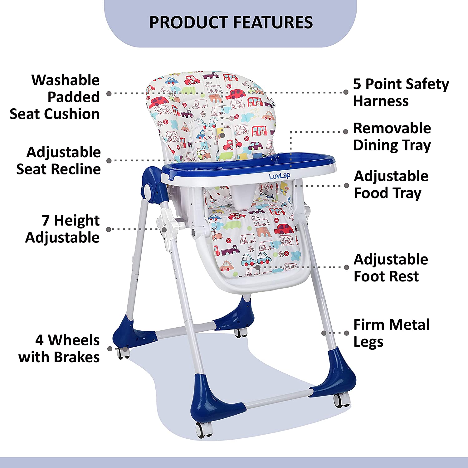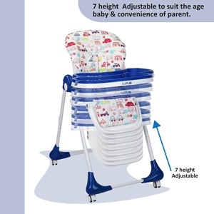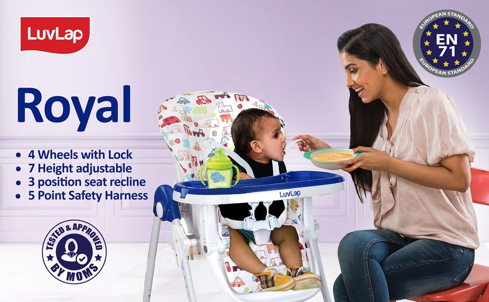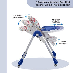 Royal High Chair for Baby, EN 71 Certified, 3 Position Recline, Baby Feeding Chair with 7 Level Height Adjustment, Adjustable Footrest, 6 Months+ (Blue)