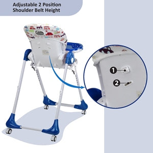 - Adjustable 3 position Seat Recline, Foot Rest & Dining Tray